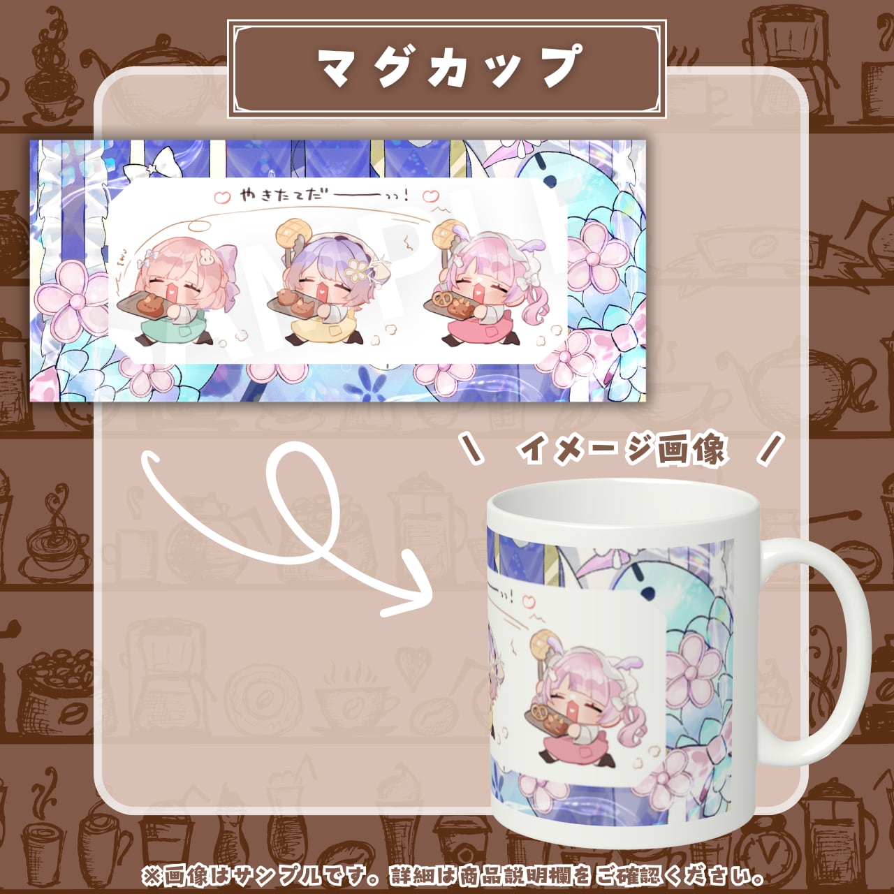 ※製造工程の都合上、サンプル画像と比較してイラストの拡大・縮小や位置が変更となる場合がございます。
